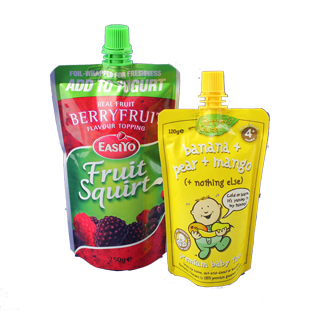 Advantages: Printing up to 10 rotogravure colors Matte/Gloss finishes Excellent ORT&WTR barrier Handle, shape Customizable barrier properties Applications: Baby foods, Beverage, Condiments, Personal care, Household